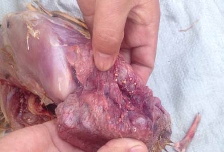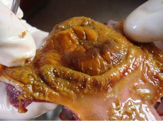 嗉囊內(nèi)有白死麩皮樣假膜