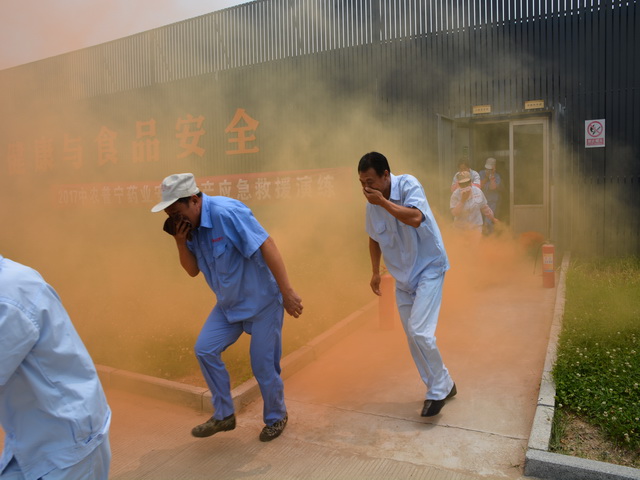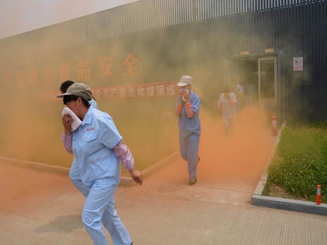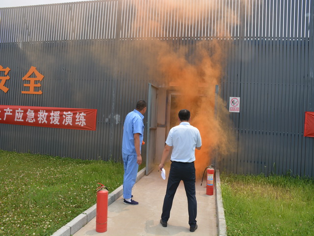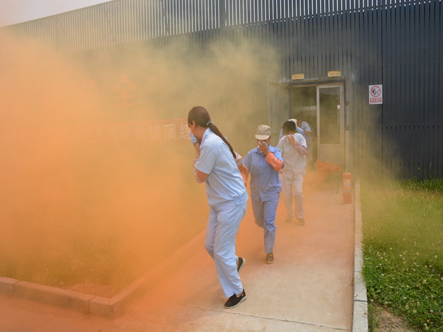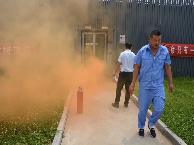 為了使演練現(xiàn)場更加逼真,生產(chǎn)部準(zhǔn)備了煙霧彈。11:20分,隨著紅色煙霧迅速彌漫生產(chǎn)車間門口,生產(chǎn)部發(fā)現(xiàn)有火情,由報(bào)警組立即向總經(jīng)理康總報(bào)告,康總隨即下達(dá)命令啟動(dòng)消防應(yīng)急預(yù)案與緊急逃生指令,車間主任第一時(shí)間按響警報(bào)鈴,同時(shí)模擬撥打火警電話,各應(yīng)急小組聽到鈴聲后各司其職,應(yīng)急疏散組在車間指揮有序疏散,為員工緊急疏散指明方向。水電組迅速切斷車間電源,救護(hù)組清點(diǎn)人員全部安全撤離到集合地點(diǎn),11:23分全部人員成功撤離。