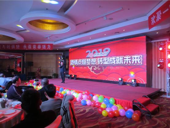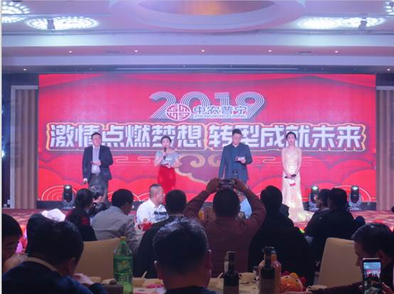 公司領(lǐng)導(dǎo)、公司部分友好人士、全體員工120余人參加了晚會(huì)。晚會(huì)以公司回顧2018《激情點(diǎn)燃?jí)粝?轉(zhuǎn)型成就未來》拉開了序幕。