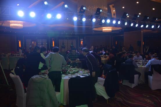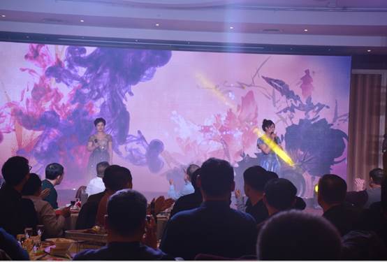 臺(tái)下一桌桌豐盛的晚餐、彼此舉杯同賀、相互祝愿。公司領(lǐng)導(dǎo)與員工親情互動(dòng)、歌聲、掌聲、歡呼聲一直在晚會(huì)現(xiàn)場(chǎng)蕩漾。