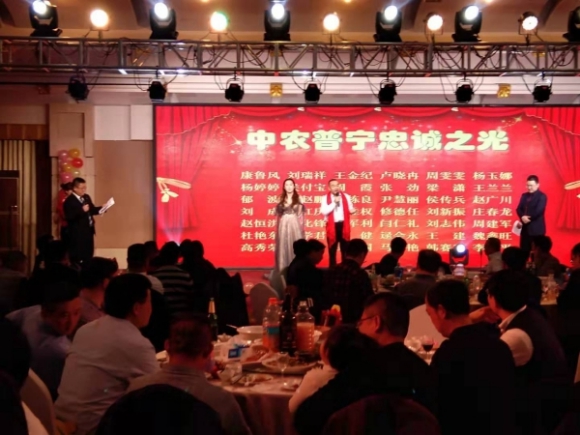 中農(nóng)普寧家人自編自導節(jié)目歌曲、詩朗誦、小品、三句半、武術等節(jié)目表演,整個晚會充滿了歡樂、溫暖與感動,洋溢著喜慶祥和的晚會氣氛。動感、激情、豪邁的歌曲音樂將晚會變成了一個歡樂的海洋,穿插幸運抽獎、表彰頒獎環(huán)節(jié)更是引得大家掌聲連連、歡聲笑語不斷,臺下一桌桌豐盛的晚餐、彼此舉杯同賀、相互祝愿。公司領導上臺講話與員工親情互動、歌聲、掌聲、歡呼聲一直在晚會現(xiàn)場蕩漾。