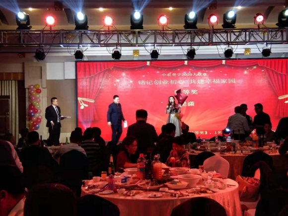 公司領導、公司部分友好人士、全體員工180多人參加了晚會。晚會以公司回顧2019《銘記創(chuàng)業(yè)初心 共建幸福家園》為主題拉開了序幕。