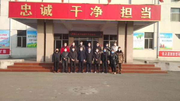 康總(左五)與房村鎮(zhèn)領(lǐng)導(dǎo)、愛心企業(yè)合影