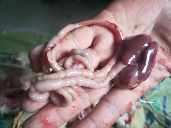 2.病原為大腸桿菌和球蟲時(shí)表現(xiàn)為:呼嚕、羽毛蓬亂、糞中帶血或呈醬紅色,雞冠蒼白、消瘦、黏膜上有壞死斑點(diǎn),糞便發(fā)黃,帶血絲較多。