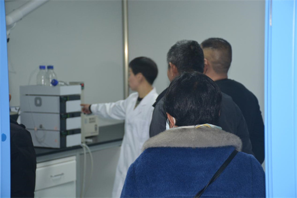 接下來歐美華團(tuán)隊(duì)參觀了公司廠區(qū)、新GMP車間、化驗(yàn)室和研發(fā)中心。公司質(zhì)控部經(jīng)理庚承芳向大家介紹了產(chǎn)品生產(chǎn)的各個(gè)環(huán)節(jié),從設(shè)備功能、生產(chǎn)工藝、環(huán)境要求等多方面向大家進(jìn)行了詳細(xì)的講解。在新GMP車間,歐美華團(tuán)隊(duì)現(xiàn)場觀摩了產(chǎn)品的生產(chǎn)過程,對潔凈的車間環(huán)境、高效的生產(chǎn)過程、嚴(yán)格的質(zhì)量把控等印象深刻、連連稱贊。在化驗(yàn)室和研發(fā)中心,歐美華團(tuán)隊(duì)對公司雄厚的的技術(shù)研發(fā)力量和先進(jìn)的實(shí)驗(yàn)設(shè)備贊嘆不已。