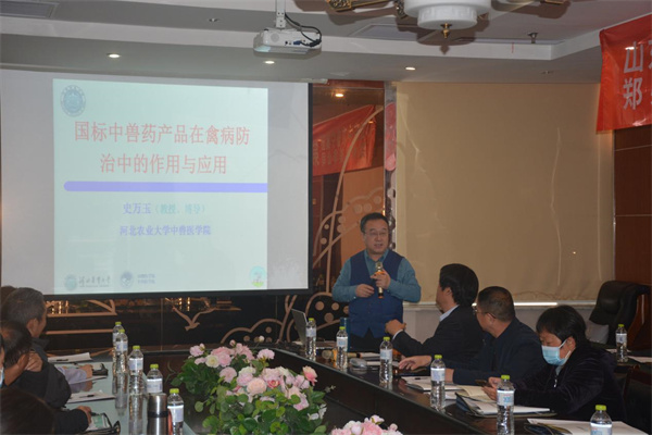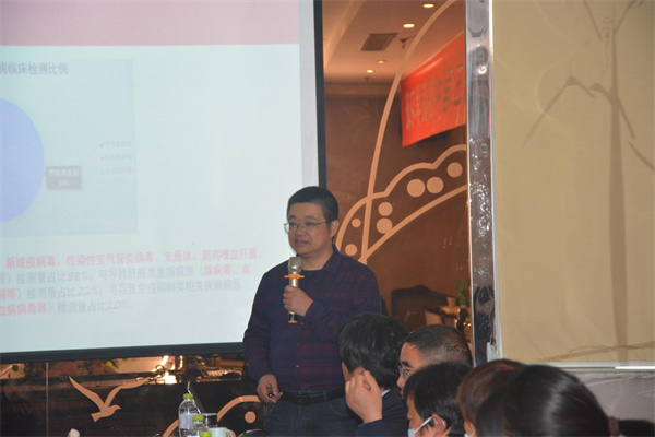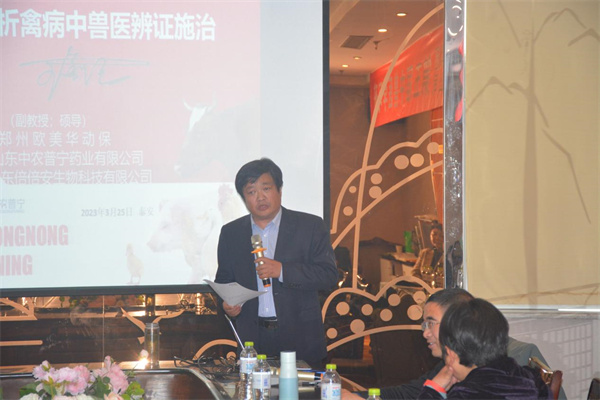 隨后,公司技術(shù)總監(jiān)王金紀(jì)帶來了《簡析禽病中獸醫(yī)辨證施治》的技術(shù)報(bào)告,在報(bào)告中,王總將中醫(yī)與西醫(yī)融合在一起,以中西醫(yī)結(jié)合的方式為大家?guī)砹艘粓鼍实闹v座。在授課過程中,針對大家在養(yǎng)殖及公司產(chǎn)品使用過程中遇到的問題,王總與大家進(jìn)行了現(xiàn)場的交流,通過面對面交流,許多困擾大家許久的問題紛紛迎刃而解。