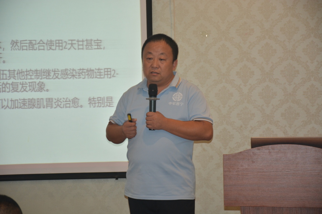 接下來(lái),公司技術(shù)總監(jiān)王金紀(jì)帶來(lái)了《當(dāng)下產(chǎn)品調(diào)整與年內(nèi)獸藥發(fā)展出路》的技術(shù)報(bào)告。王總介紹了當(dāng)前公司產(chǎn)品的架構(gòu),分析了目前獸藥行業(yè)面臨的問(wèn)題,同時(shí)基于公司未來(lái)的發(fā)展,王總給出了公司產(chǎn)品接下來(lái)的研發(fā)方向,只有緊跟市場(chǎng),不斷推陳出新,才能始終保持公司產(chǎn)品的市場(chǎng)競(jìng)爭(zhēng)力。