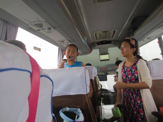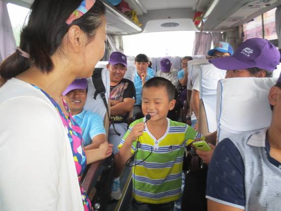 早餐過后在美女導(dǎo)游的主持下,人力資源部的調(diào)動下以一首滾滾長江東逝水開啟了節(jié)目表演接力時段,唱歌、笑話、腦筋急轉(zhuǎn)彎、舞蹈、古詩、三字經(jīng)、出師表等豐富的節(jié)目呈獻(xiàn)給了大家,孩子們也成為重要的演員之一,大家參與度極高一路上歡聲笑語一點(diǎn)也感覺不到時間過得很快。