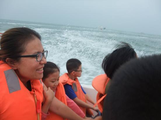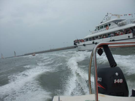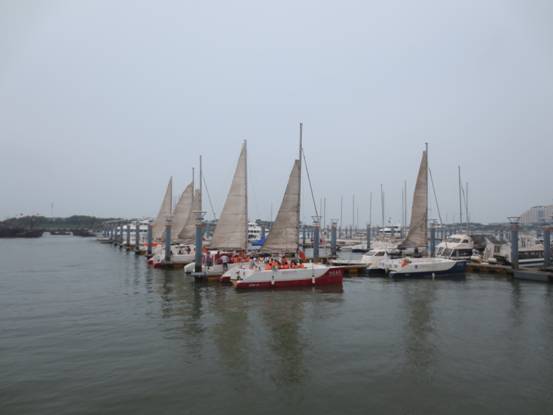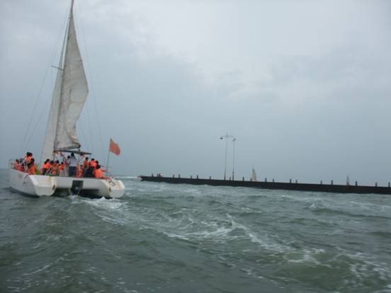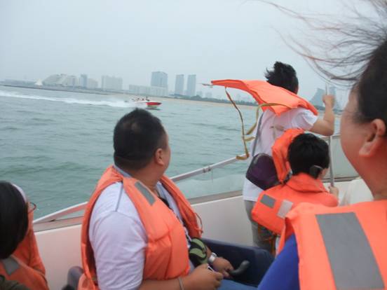 中午12:00多到達(dá)了日照,見到了黑黑圓臉導(dǎo)游小劉,小劉安排大家快速用完午餐來到了日照萬平口景區(qū)。在黑黑小劉的一直強(qiáng)說之下,家人乘坐上了游艇、帆船。感受了奧帆基地的風(fēng)采與刺激,感受到大海寬廣的胸懷與氣魄。